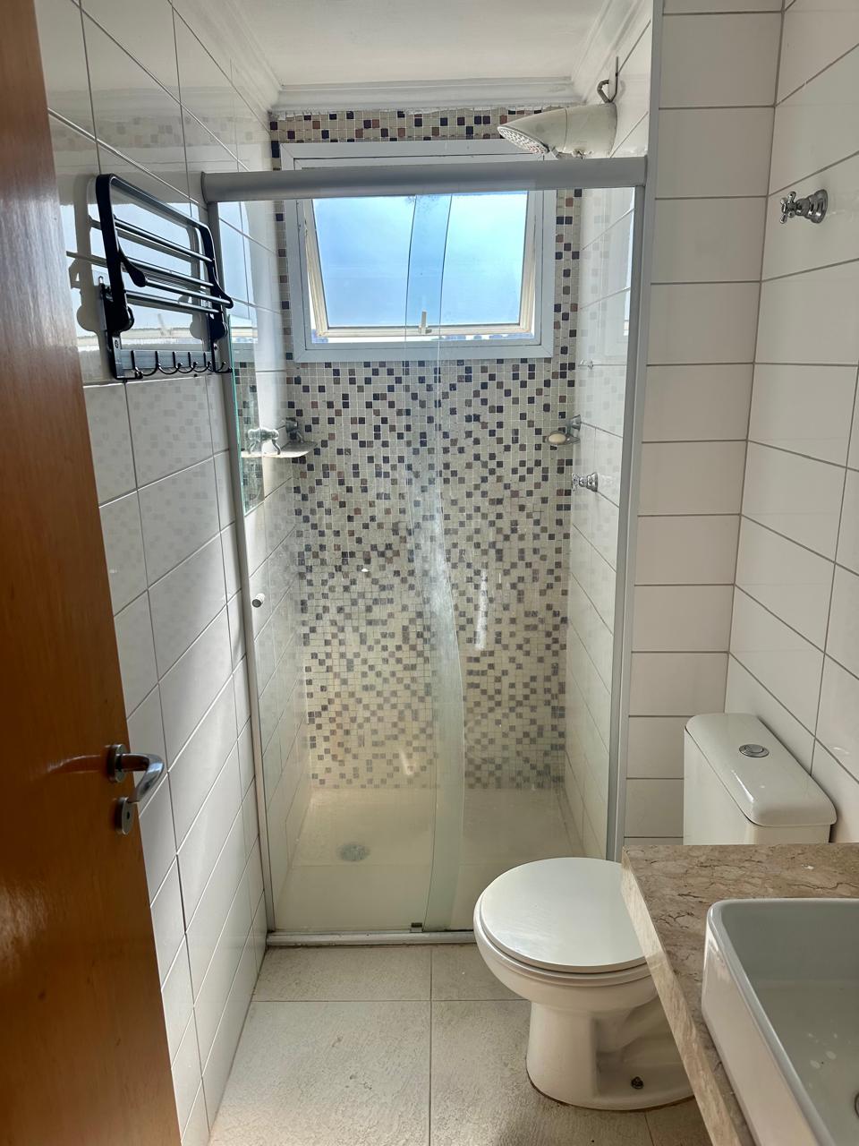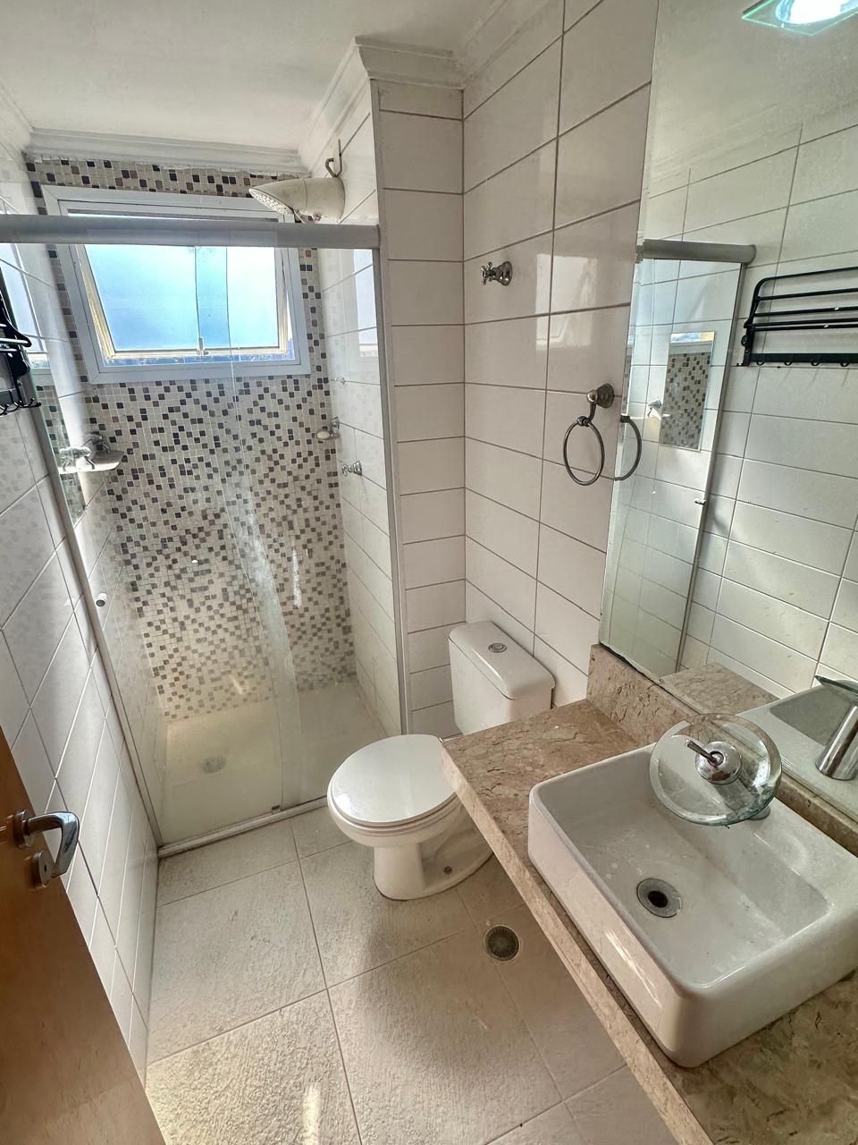 Banheiro social com gabinete e box;